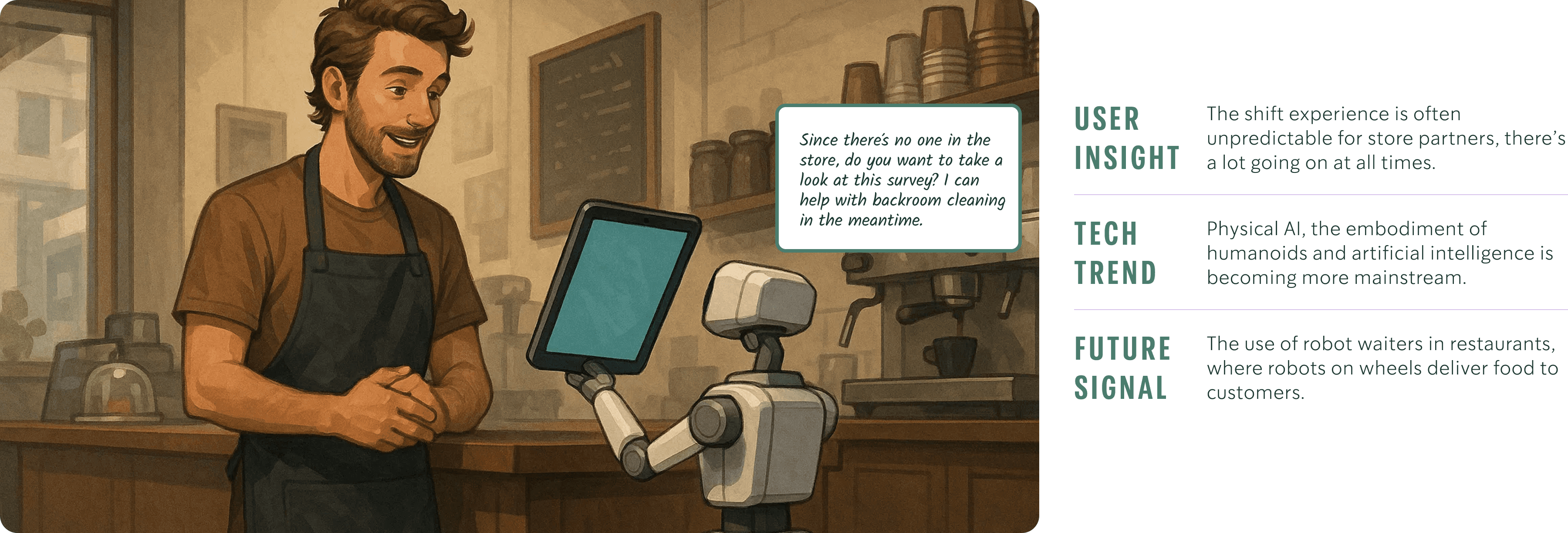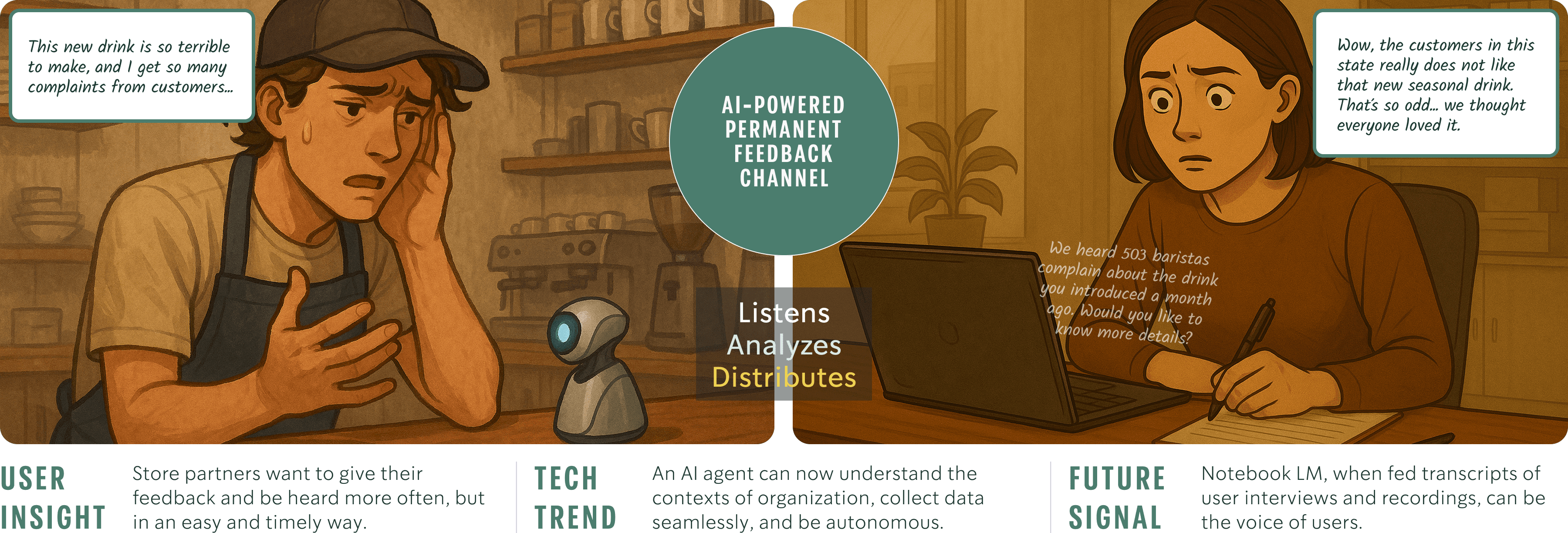 A future where store partners could share their thoughts anytime through a simple voice memo or chat, and AI could listen, learn, and instantly surface insights to the right teams